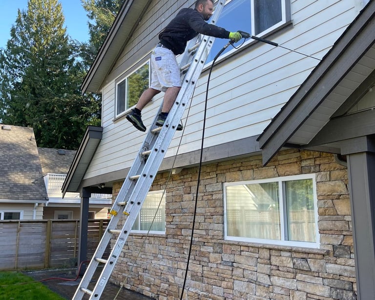Our pressure washing service thoroughly cleans exterior surfaces to remove dirt, mold, mildew, and old paint, ensuring a smooth and long-lasting finish for your paint job.